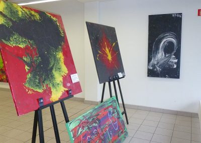 Der Ausstellungsraum mit Acrylbildern, StreetArt und Skulpturen befindet sich an der Bahnhofstrasse 9, zwischen Padeffke und Mode Muschler und ist geöffnet: Mittwochs 16-19h, Samstags 11-15h und Sonntags 14-17h.